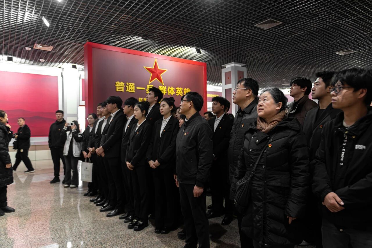 庄严肃穆的烈士陵园内,松柏苍翠,丰碑矗立。在讲解员的引导下,师生们有序参观了长春革命烈士纪念馆。同学们驻足凝视,认真聆听,深刻感悟革命先辈为民族独立、人民解放和国家富强所展现出的坚定信念与牺牲精神。在巍然屹立的革命烈士纪念碑前,全体师生整齐列队,向革命烈士敬献花篮,以表示对先驱者们的无限敬仰与哀悼。